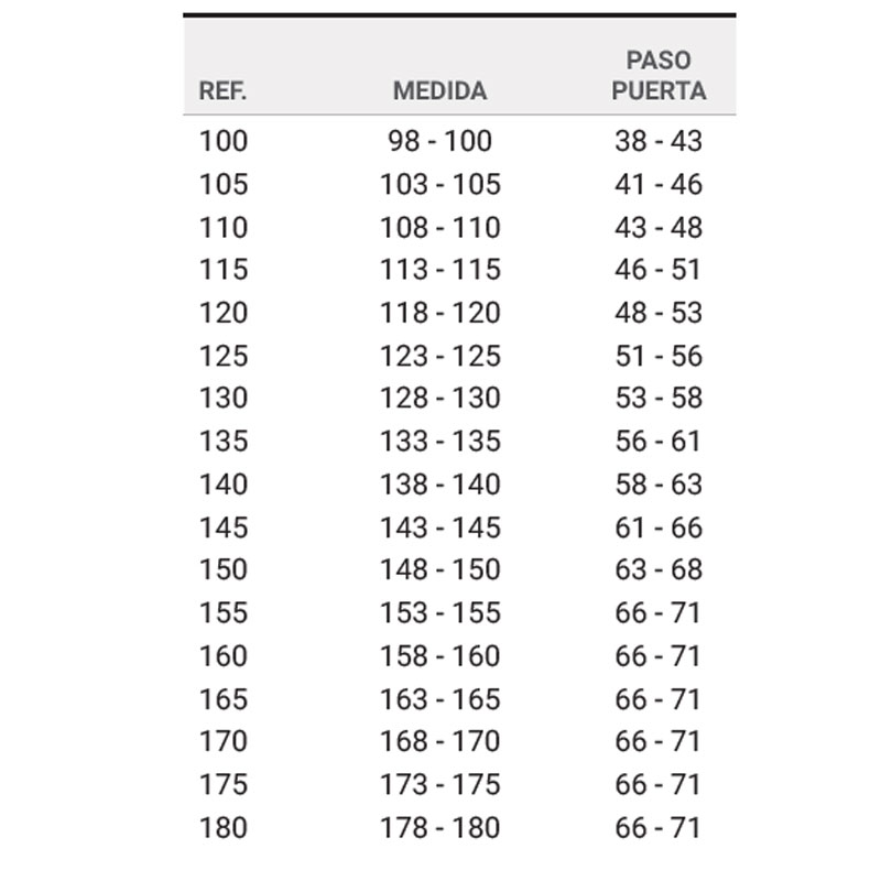 Es muy importante que tengas en cuenta que tu medida esté dentro del rango de medida mínima y máxima que tiene la mampara. La medida que elijas tiene un rango marcado con una medida mínima y máxima que es el intervalo de medidas al que se ajustará la mampara.